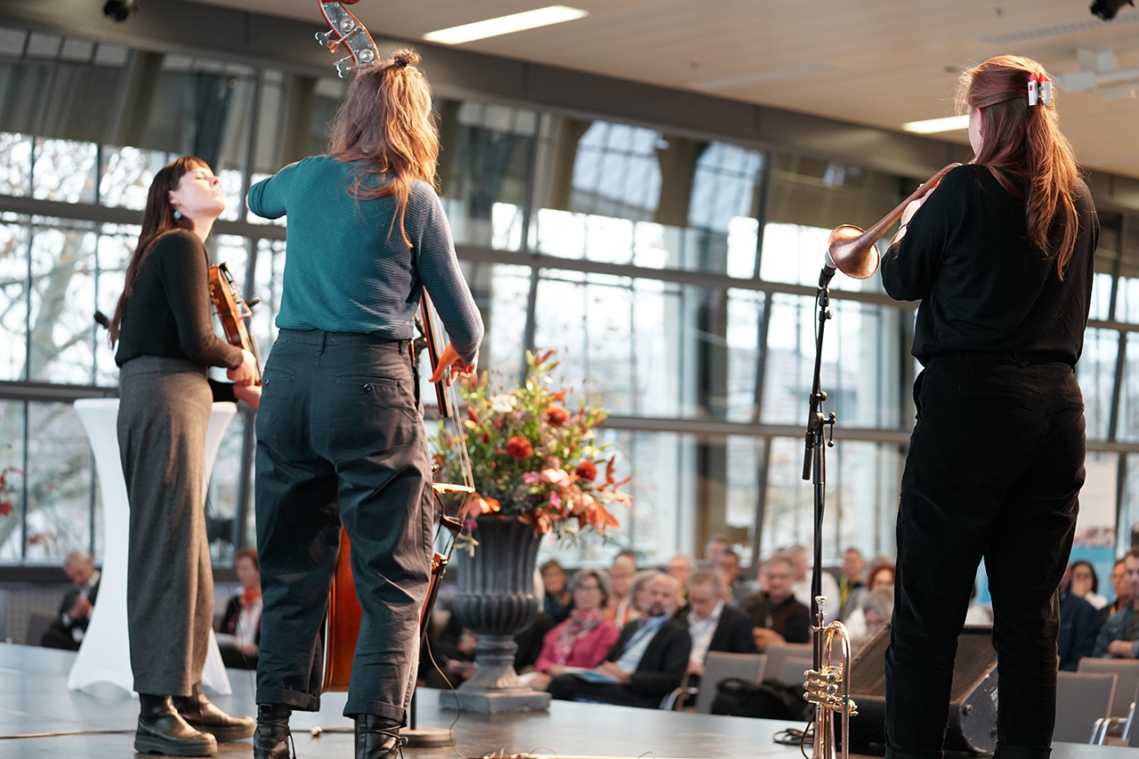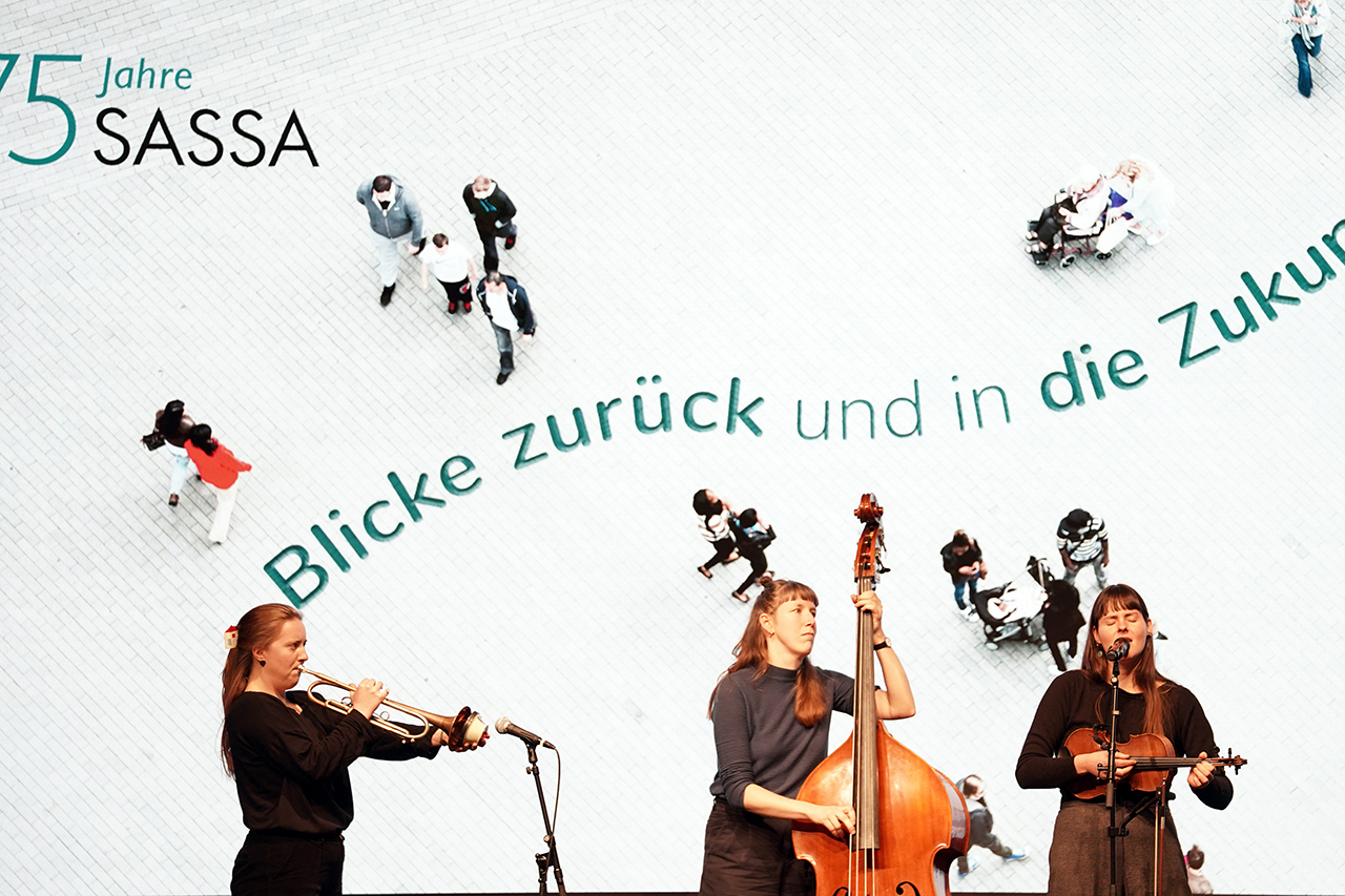 Agnès Fritze, l’actuelle présidente de la SASSA, a modéré le programme de cet événement, entre humour et dynamisme. La soirée a été accompagné par Sonja Ott (trompette), Hannah Adriana Müller (chant+violon) et Johanna Pärli (contrebasse) du trio “Tie Drei”.